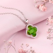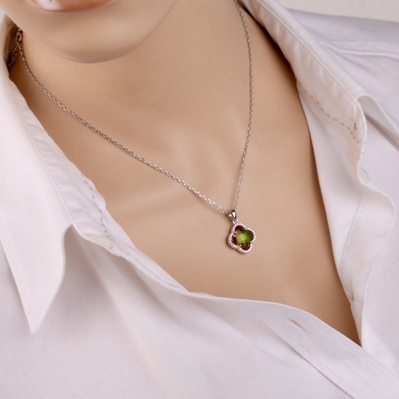 Очарователно, нежно колие с очарователни цирконии и уникален султанит в необичайна форма. Колието изглежда лаконично и стилно в красива рамка от сребро проба 925. Чудесна възможност да се поглезите или подарите на любим човек, който да подчертае нежността, чара и естествената красота! Оплетка на котвена верига с диамантено рязане.
