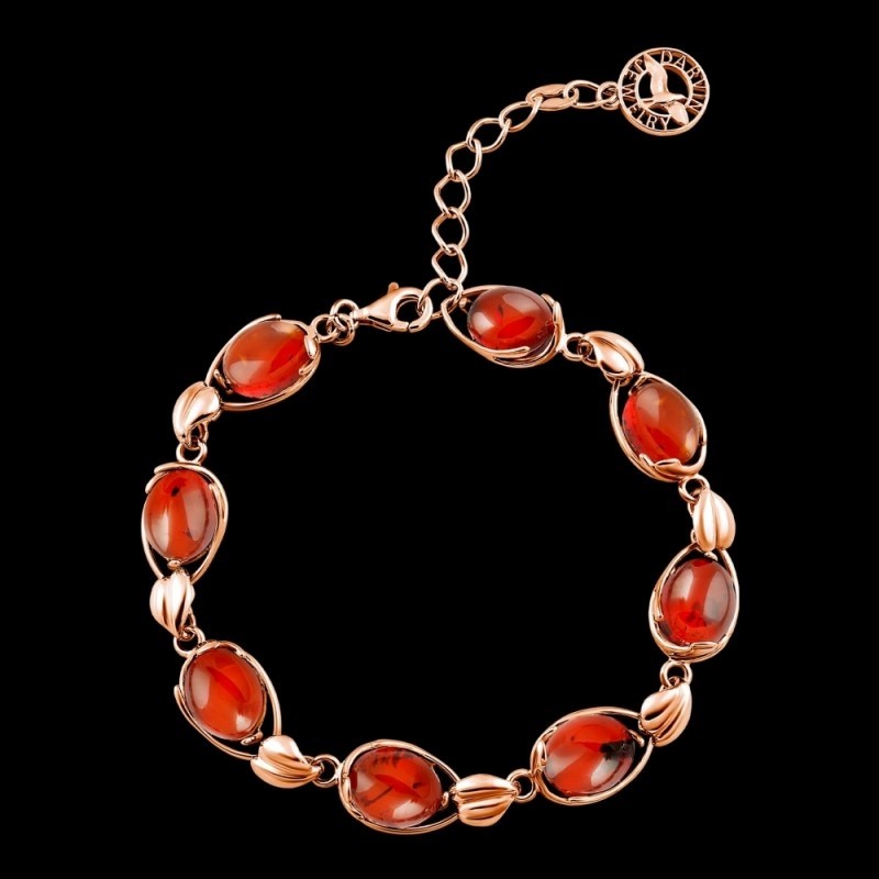Очарователна гривна, изработена от позлатено сребро проба 925, украсено с кехлибар, с това невероятно "парче слънце", което играе във всички нюанси на цвета на коняк, омагьосва и пленява с красотата си, ще ви радва отново и отново! Уникална възможност да подчертаете своята индивидуалност, да предадете образа на женственост и нежност. Красива комбинация от блестящо злато и слънчев кехлибар придава на визията ви празнично настроение!
