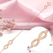 Златна гривна Руско злато 585 в Германия безкрайност. Нежна и романтична гривна от 14 каратово червено злато, украсена със златен символ на безкрайността. Верига - анкерна оплетка с диамантено рязане.