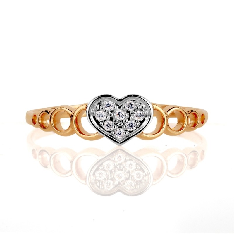 Пръстенът е изработен от руско червено/бяло злато 585, с фианити ¢ 1 мм, които са перфектна имитация на диаманти.