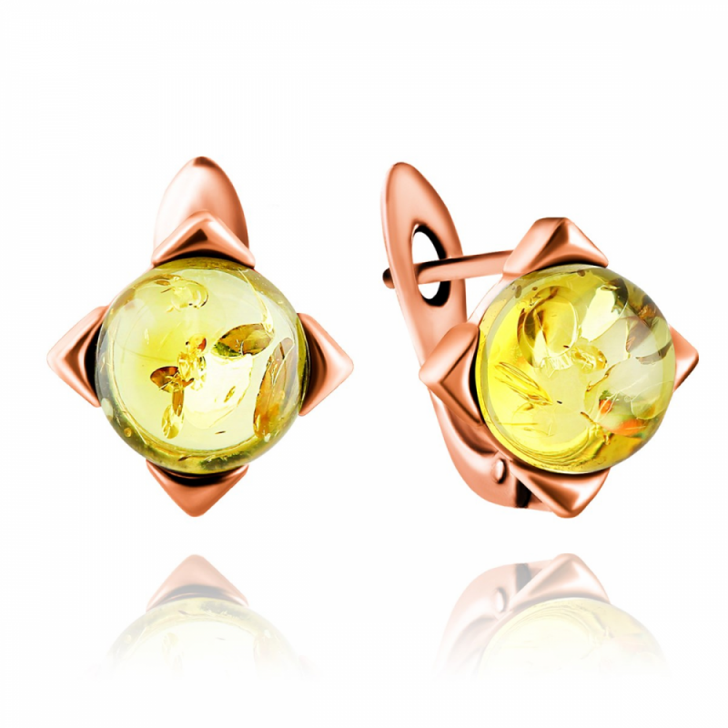 Позлатени сребърни обеци 925º с кехлибар