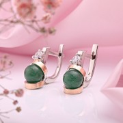 Купете сребърни обеци в Германия. Нефрит и кубичен цирконий. Очарователни обеци от сребро проба 925 със злато проба 375, украсени с искрящ цирконий и красив зелен нефрит. Зеленият цвят е самият живот. Нюансите на зеленото са били обичани от великите владетели Катрин де Медичи и Елизабет Петровна и това свидетелства за мъжествеността на тяхната природа. Този цвят също често се свързва с оптимизъм и жизненост, повишава нивата на енергия и мотивация и помага за поддържане на надежда. се асоциира с чувствителна и открита личност. Ако искате да подчертаете женственост, грация, усмивка и красота, този продукт е за вас.