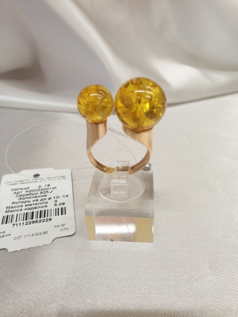Елегантен пръстен, изработен от 925 сребро, позлатен, украсен с кехлибар, с това невероятно „парче на слънцето“, във всички нюанси на цвета на меда, вдъхновява и наслаждава благодарение на красотата си! Пръстенът ще подчертае перфектно нежността, чара и естествеността на красотата му и ще привлече вниманието към женствеността на ръцете ви.