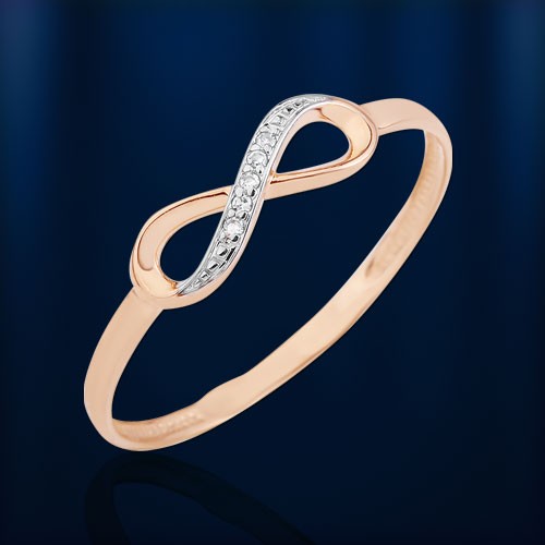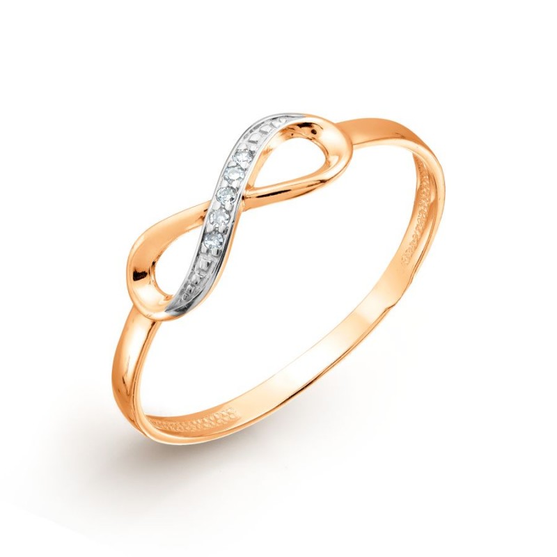 Anell d'or vermell/blanc 585° decorat amb 5 diamants talla brillant de 0,013 ct. 2/3