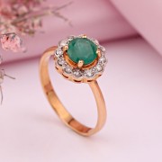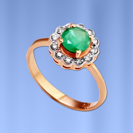 Anell d'or amb diamants i maragda. Anell fet d'or vermell de 585° amb accents d'or blanc, que subratlla la bellesa dels diamants d'una manera especial!