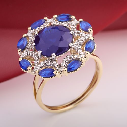 Anell d'or amb diamants i safirs