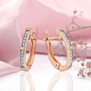 Arracades d'or amb diamants Or rus 585. Elegants arracades d'or d'or vermell 585 amb diamants sobre fons d'or blanc. El complement ideal per a la imatge d'una dona amb estil que li agrada canviar d'aspecte són les arracades amb diamants fets d'or vermell 585. Aquest complement expressiu i sofisticat és adequat per a dones de totes les edats que aprecien els dissenys interessants i les pedres impecables.
