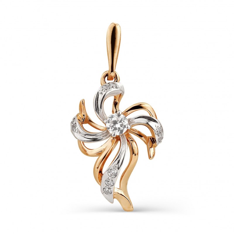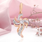 Penjoll d'or rus a Alemanya 585 amb zirconi. Preciós penjoll fet de mostra d'or vermell 585 amb accents d'or blanc, decorat amb zirconi. Si vols destacar en la teva companya la seva feminitat, gràcia, somriure i bellesa, aquest regal és perfecte per a tu.