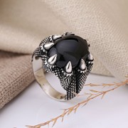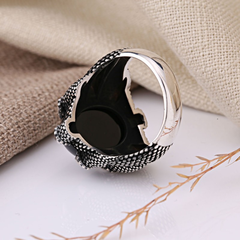 Anell masculí fet de plata 925 Agate negre. Anell masculí fet de plata ennegrit de 925 amb una gran agata negra en un marc original. Tot home vol tenir el seu propi accent elegant, una cosa cara que subratlla l'estat.