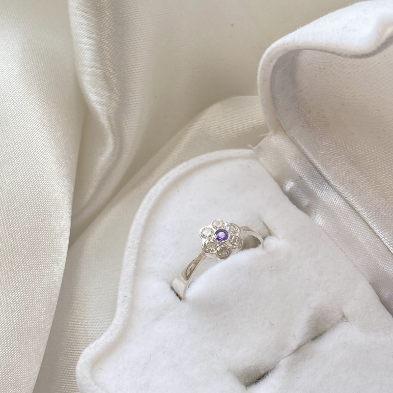 Inserció: 1 zirconia morat brillant Ø 2,0 mm; 6 zircons Ø 2,0 mm