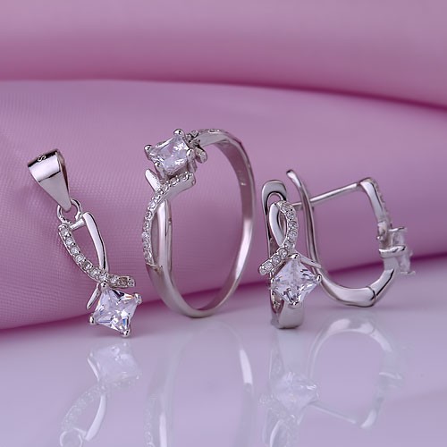Set de plata 925 amb fianites 4,0 х 4,0 мм, fianites incolores ¢ 1,0 мм