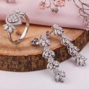 Un deliciós conjunt fet de plata de llei 925 amb insercions de zirconi brillant! La combinació d'aquestes encantadores pedres de diferents mides dóna al producte un aspecte únic i captiva la vista. Aquest conjunt posarà l'accent en la tendresa, la feminitat i l'encant del seu propietari!