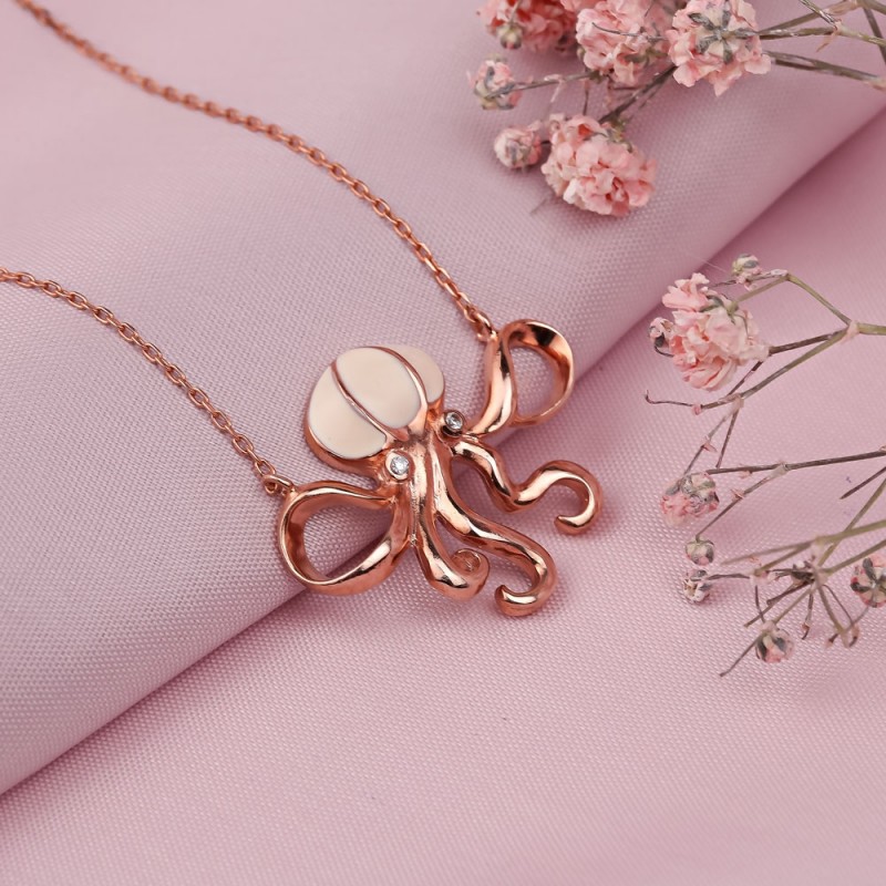 Adorable i delicat collaret amb encantadors zircons cúbics i esmalt. El collaret sembla concís i elegant en un bonic marc fet de plata de llei 925 banyada en or vermell. Una gran oportunitat per mimar-te o fer un regal al teu ésser estimat que emfatitzarà la tendresa, l'encant i la bellesa natural! Trena de cadena d'àncora amb tall de diamant.