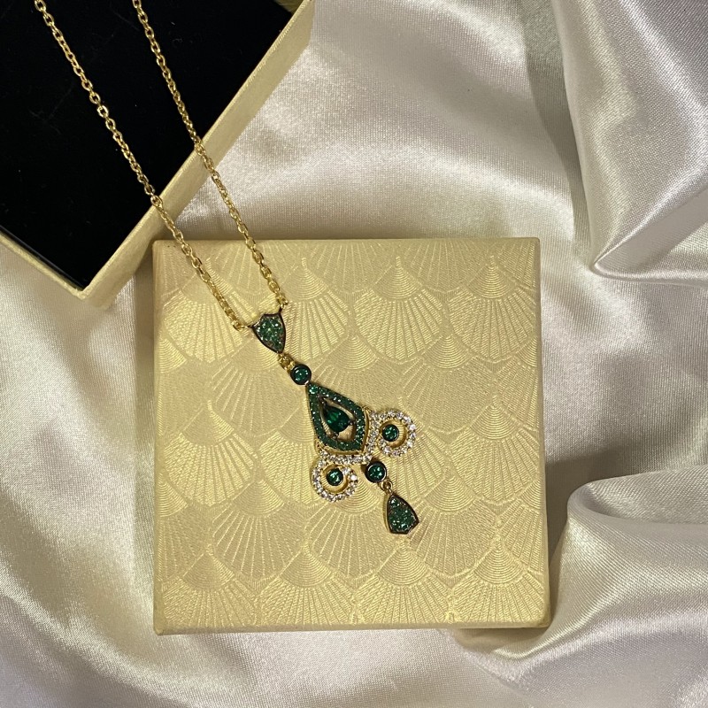 Un elegant collaret de plata de llei 925 banyada en or groc amb una inserció decorativa, decorat amb zirconi de colors sobre fons ennegrit! La malla de la cadena és àncora. Tall de diamant!