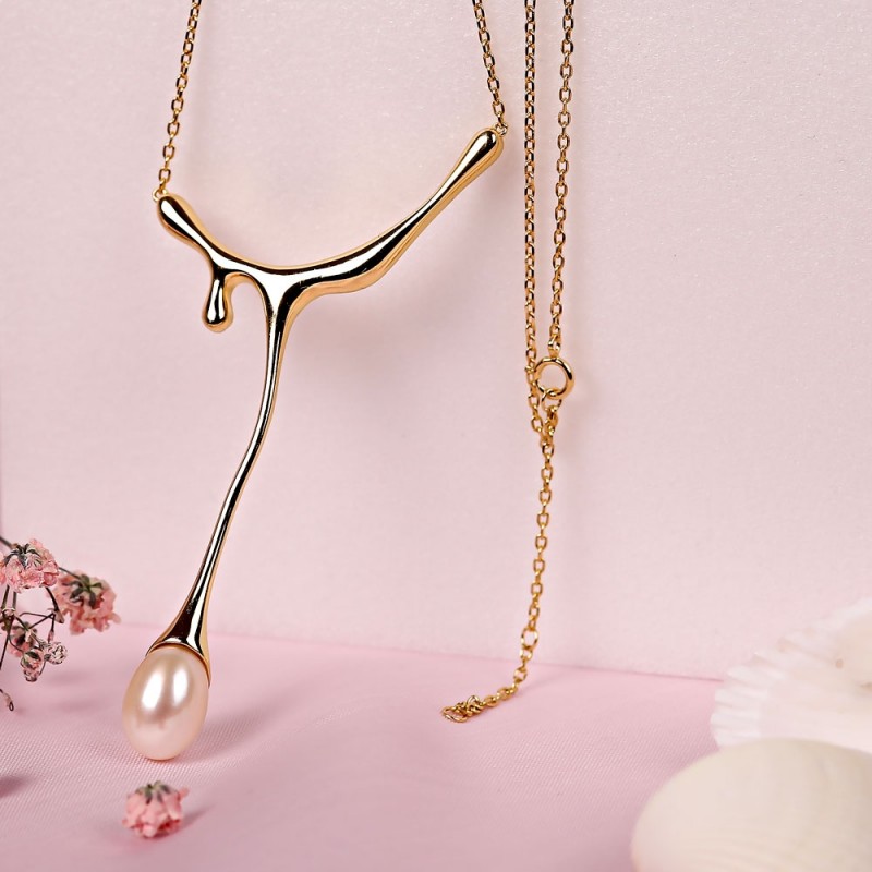 Un elegant collaret de la col·lecció Gianni Lazzaro. Plata de llei 925 amb bany d'or groc massís, decorada amb perles naturals d'aigua dolça que creixen en condicions normals! Cada perla té la seva forma única, un regal de la natura!