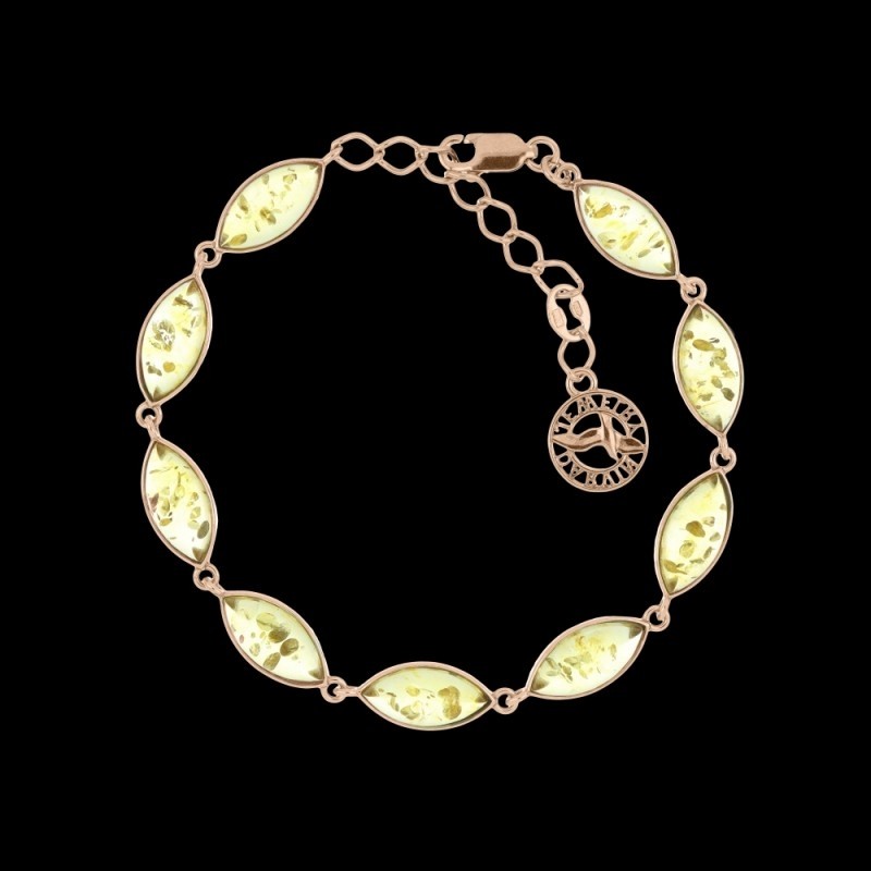 Una polsera femenina festiva feta de plata 925 banyada daurada i decorada amb ambre, amb aquesta increïble "peça del sol", jugant en tots els tons de color mel, encisadora i captivadora per la seva bellesa, us delectarà una vegada i una altra! Una oportunitat única per emfatitzar la teva individualitat, transmetre la imatge de feminitat i tendresa. Una bonica combinació d'or brillant i ambre assolellat dóna al teu look un ambient festiu!