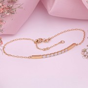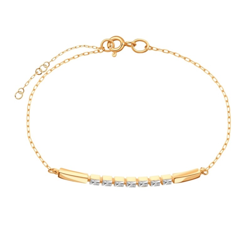 Polsera d'or or rus 585 a Alemanya bicolor. Polsera delicada i romàntica d'or vermell de 14 quirats, decorada amb inserció d'or d'or rosa/or blanc amb tall de diamant. Cadena - trena d'àncora amb tall de diamant.