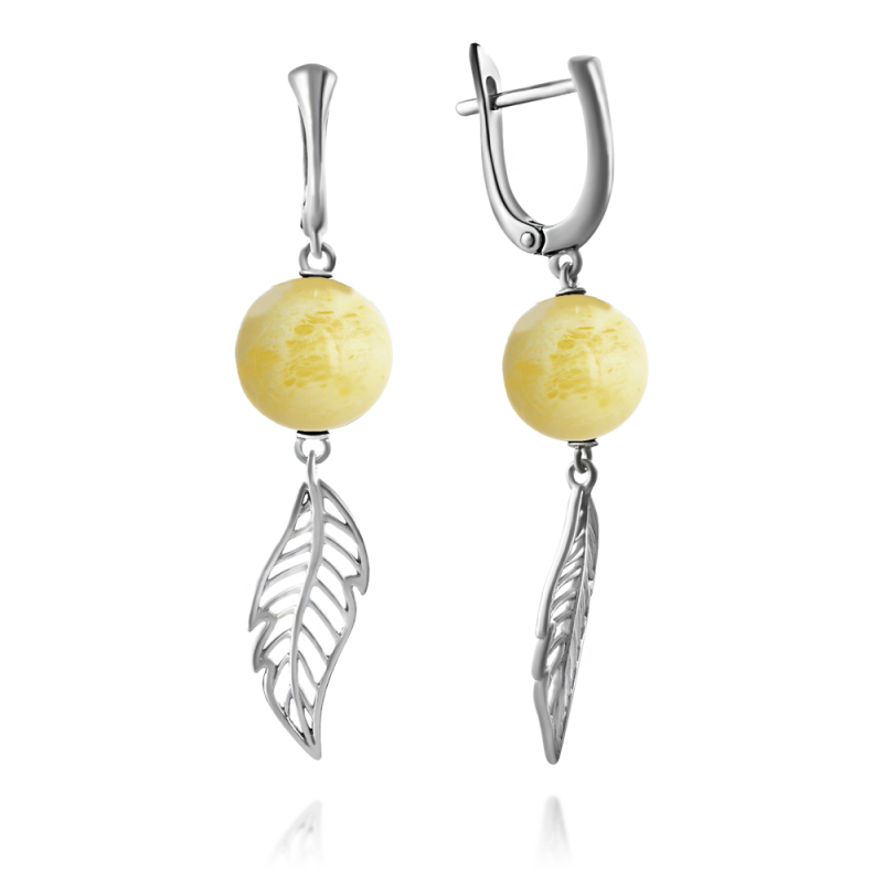 Boniques arracades fetes amb mostra de plata 925 rodiada, amb ambre reial! La característica principal de l'ambre blanc o reial és la seva bellesa i valor excepcionals, ja que es produeix més rarament que altres a la natura. Una base mat amb inclusions de diferents tons crea degradats originals que els joiers mostren amb habilitat. Una oportunitat única per emfatitzar la teva individualitat, per transmetre la imatge de feminitat, sol i tendresa.