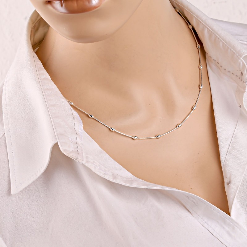 Els elements intermedis fins en forma de petits barrils donen a la joieria un toc distintiu i el converteixen en una declaració de la feminitat moderna. El collaret abraça la pell com la seda, segueix tots els moviments i subratlla l’elegància natural del portador.