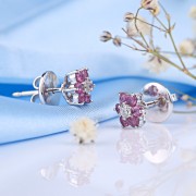 Gianni Lazzaro -Elegants arracades d'or blanc d'or blanc de 18k amb diamants i safir rosa.