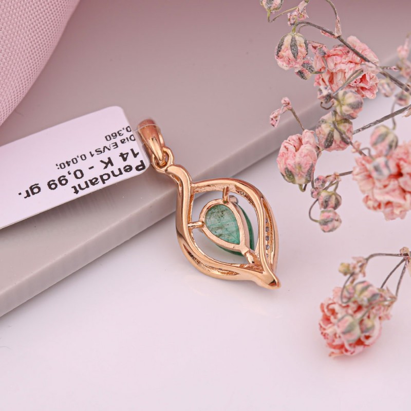 Penjoll d'or SOKOLOV amb diamants i maragdes. Elegant penjoll d'or blanc i vermell 585 amb insercions de diamants i maragdes encantadores! L'or blanc emfatitza favorablement la bellesa dels diamants, i l'ennegriment emfatitza la singularitat de les maragdes. Les joies d'or i diamants són una combinació de sofisticació, luxe i elegància. Si vols emfatitzar la feminitat, la gràcia, el somriure i la bellesa, aquest regal és adequat per a tu.