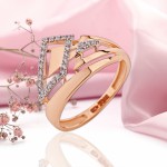 Zlatý prsten 585 s diamanty. Prsten z červeného zlata 585 s peridotem (chryzolitem) a diamanty