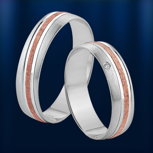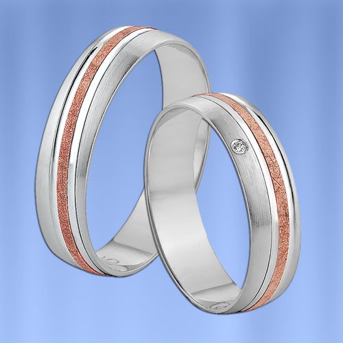 Dvoubarevný prsten z červeného a bílého zlata 585° (matný / lesklý) s diamantem (1 x 0,005 ct)