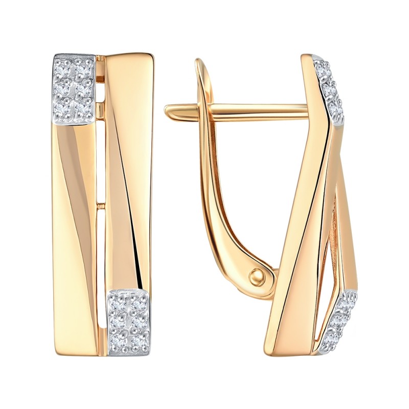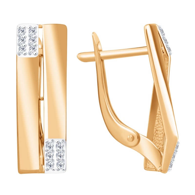 Náušnice červené zlato 585 zirkony. Tyto náušnice představují moderní eleganci a jasný design. Protáhlá, mírně zakřivená silueta z červeného zlata 585 působí klidně a sebevědomě.