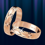 Unikke vielsesringe lavet af rosa guld. Vielsesringen, med et fint diamantskåret ornament, skinner med sit usædvanlige design. Bredde ca 5 mm. De tilgængelige "russiske" størrelser på lageret - fra 15,5 til 24. For bestilling kan du vælge den ønskede størrelse her ved at trykke på hånden på rullen "Størrelser".