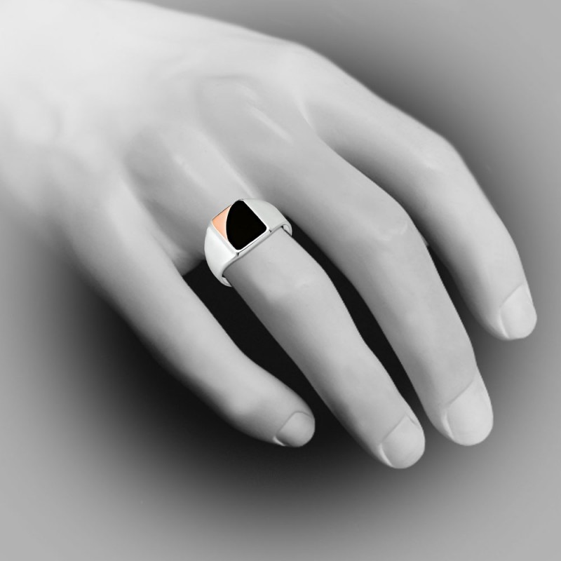 Herrering lavet af 925 sterling sølv kombineret med 375 guld. Indlæg: Onyx. Hver mand vil have sin egen stilfulde accent, en dyr ting, der understreger hans status. Et fremragende valg for alle, der ønsker at give deres billede mere soliditet, udtryksfuldhed og originalitet. Fuldend dit look og understrege din individualitet med kun ét originalt tilbehør, så går du ikke galt.