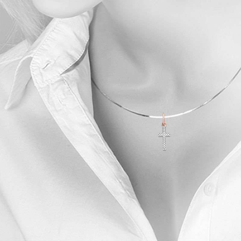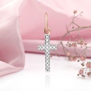Korsvedhæng lavet af 14 karat rød- og hvidguld prydet med fortryllende diamanter. Indsætningen af stenene i hvidguld understreger perfekt deres skønhed!