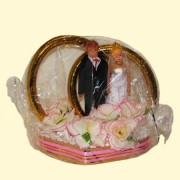 Bryllupsdekoration - dekorative vielsesringe og figur med magnet til bryllupslimousinen.
