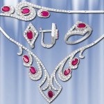 Ohrringe aus Rotgold mit Saphiren und Diamanten.
