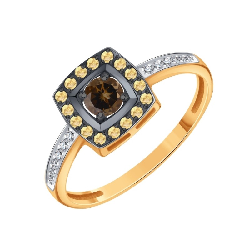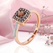 Guldring russisk guld 585 røgkvartszirkonia. Guldring lavet af 585 russisk rødguld med røgkvarts og zirconia. Den sorte ramme og hvidguldsaccenter understreger ædelstenenes dybde og skønhed, femininitet, elegance og god smag. En charmerende gave lavet af 585 rødguld og zirconia til dine kære!