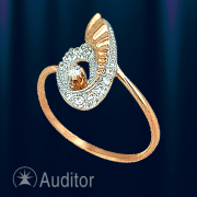 Ringen er lavet af rødt russisk guld 585, kombineret med hvidguld og dekoreret med farveløse zirkoner, som er perfekte efterligninger af diamanter.