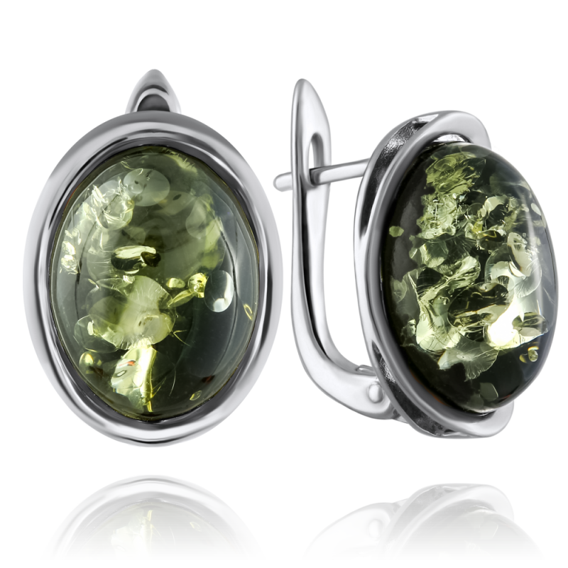 Smukke øreringe lavet af sølv 925 prøve, med grønt rav, fantastisk "stykke af solen"! En unik mulighed for at understrege din individualitet, formidle billedet af femininitet, solskin og ømhed. Rhodiumbelagt!