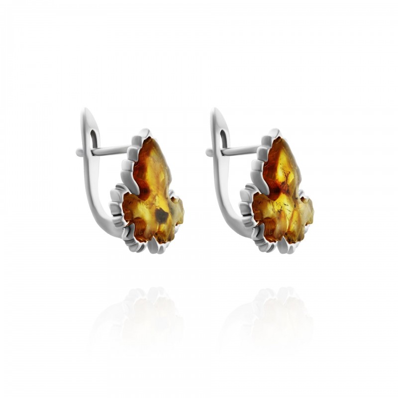 Smukke øreringe lavet af sølv 925 prøve (forgyldt), med gult rav, fantastisk "stykke af solen"! En unik mulighed for at understrege din individualitet, for at formidle billedet af femininitet, solskin og ømhed.