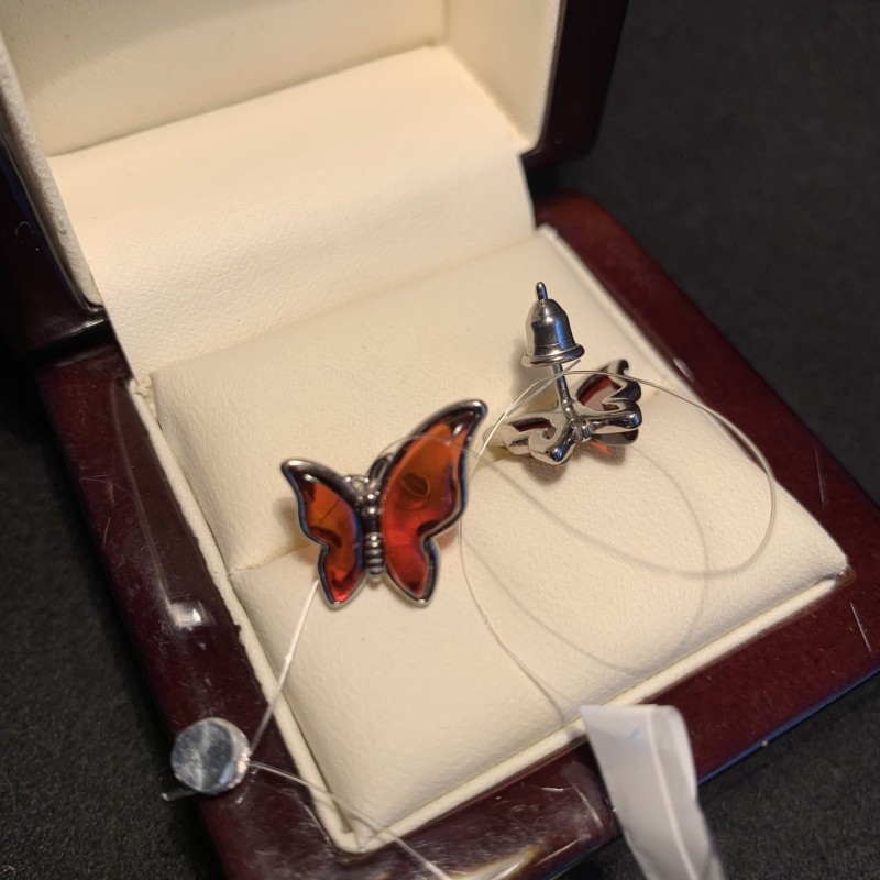 Indsats: Rav, sommerfuglevinger 2 x 14,0 x 6,0 mm; 2 x 10,0 x 4,0 mm