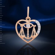 Stjernetegn "Vægten" fra russisk guld 585 prøve med 5 fianiter ¢ 1,0 mm, 1 fianitter ¢ 2,0 mm. Tofarvet