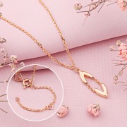 Køb guldhalskæde 585. Halskæde lavet af 585 rødguld med en elegant, aflang vedhængsform - et minimalistisk smykke med udtryksfuld geometri. Den aflange form giver kompositionen dynamik og lader linjerne fremstå bløde i rummet.
