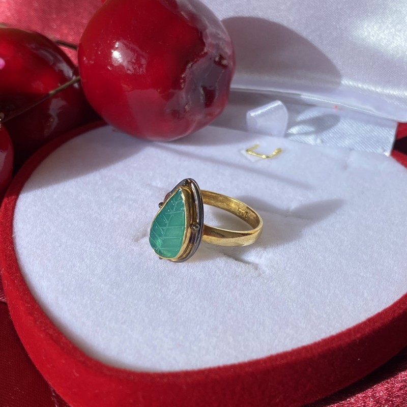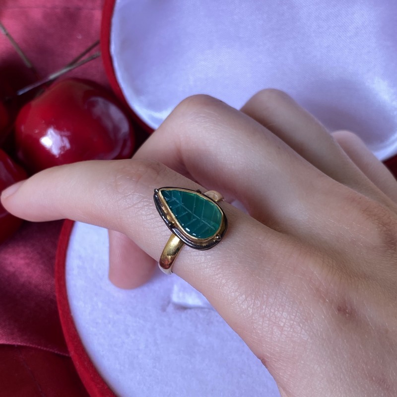 Forgyldt sølvring med grøn agat