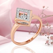 Dancing Diamond Goldring 585. Dancing Diamond - Ring aus russischem Rotgold, kombiniert mit Weiß. Ein eleganter Goldring mit Diamanten und einem tanzenden Diamanten vor einem Hintergrund mit Diamantschliff aus Weißgold! Natürlich träumt jede Frau von einem so unvergesslichen und unvergesslichen Geschenk für die Finger schöner Frauen, wie einem Goldring mit einem Diamanten.