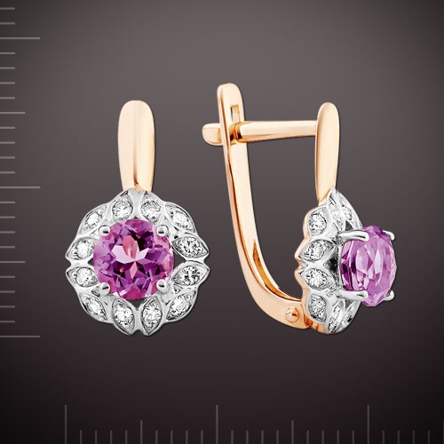 Rotgold mit Diamanten und Amethysten. Schön, zart, anmutig verleihen sie dem Bild Eleganz und vermitteln ein Gefühl von Leichtigkeit und Luftigkeit. Diese Art von Schmuck passt zu jedem Outfit und Look, Hauptsache man trägt ihn gerne!