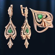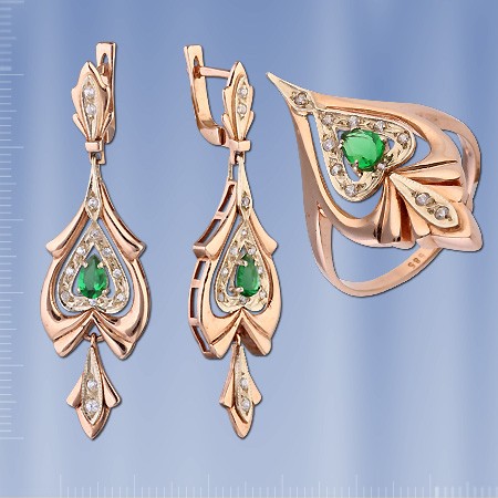 Faemur aus rotem und gelbem Gold 585 Proben mit Einsätzen synthetischer Smaragd und Kubikonits