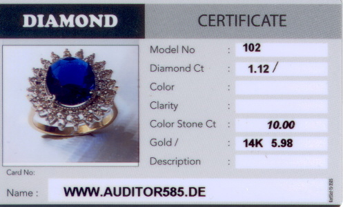 Einsätze: 36 Diamanten 36 kR57 1.12 Ct., Saphir Oval 10,0 x 12,0 cm.
