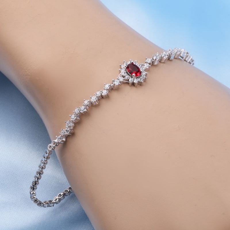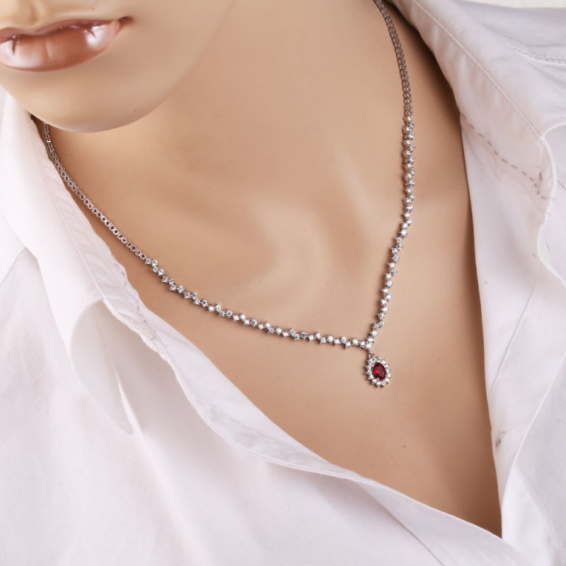 Einsatz: Zirkonia Ø 2,0 mm; 1 ovaler, granatfarbener Zirkonia, 6,0 x 4,0 mm
