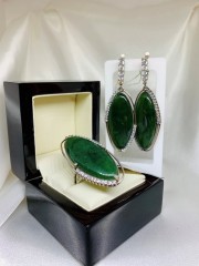 Ein entzückendes Set aus geschwärztem 925er Sterlingsilber mit Einsätzen aus großer Jade und funkelnden Zirkonia! Die Kombination dieser bezaubernden Steine in verschiedenen Größen und Farben verleiht dem Produkt ein einzigartiges Aussehen und fesselt das Auge. Ein solches Set wird die Reife, Tiefe und den Charme seines Besitzers unterstreichen!