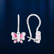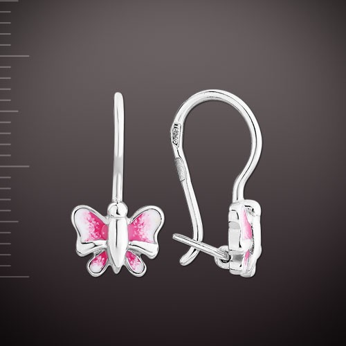 Niedliche „Butterfly“-Ohrringe sind aus 925er Sterlingsilber gefertigt und mit zartrosa Emaille überzogen. Rhodinierte Ohrringe. Rhodium verdunkelt sich an der Luft nicht und daher dient die Rhodinierung dazu, Silbergegenstände vor dem Verdunkeln zu schützen, und in der Schmuckherstellung wird es auch als schützende und dekorative Beschichtung verwendet. Es ist das hellste und härteste Metall der gesamten Platingruppe