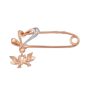 Anstecknadel aus vergoldetem 925er Silber mit Einsätzen aus funkelnden Zirkonia und einem Anhänger in Form von zwei Tauben!
