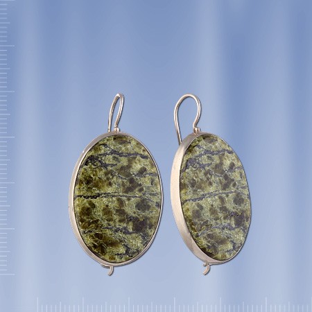 Schicke Ohrringe mit großem Serpentineneinsatz (30 x 20 mm). Dieser Schmuck wird nie aus der Mode kommen!